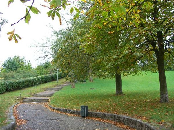 穿過舊美茵橋後,聳立於對岸山丘上的要塞就是瑪莉恩堡,其實前一天才剛爬完海德堡的哲人之路,遙望遠立的城堡,心著實涼了一半,今晚,腿肯定又疼到不行。山腳下的小公園,是通往城堡的起點,沿途一個人影都沒有。