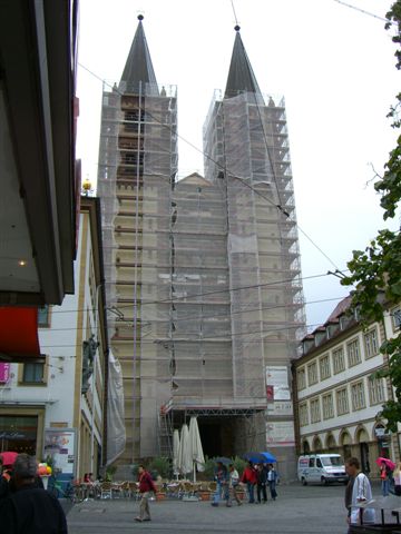 聖祈利安大教堂(Dom Sankt Kilian),排列為德國羅馬式教堂第四位,內部裝潢全為巴洛克式,1945年被大火摧毀,1967年重新落成,全部保留原先的樣式重蓋,這趟朝聖卻遇上大整修,無法參觀,只能拍了這張照當回憶!