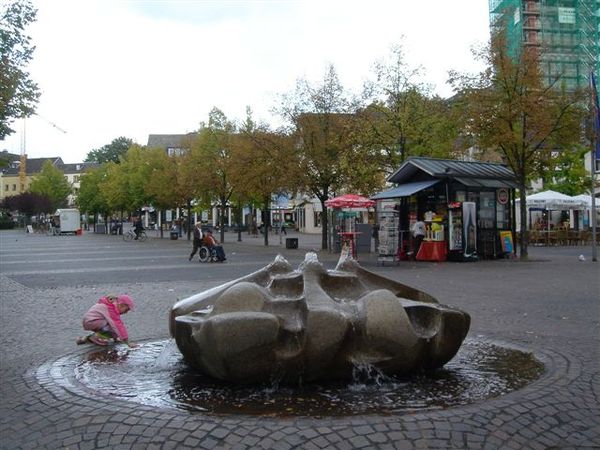 步出車站後,看到天色覺得大事不妙,感覺像要下大雷雨似的,這趟德國行有夠坎坷的每天都是陰雨天,因為事前沒有計劃要來這邊,翻了旅遊書也沒找到介紹Siegburg,決定不按牌理來啦,隨處閒晃!步出車站後很快就發現旅遊路線指示圖,還好我方向感挺不錯的,看到小水池就是市中心囉!(明信片有拍過這個池,但我抓不到感覺,拍得好醜)